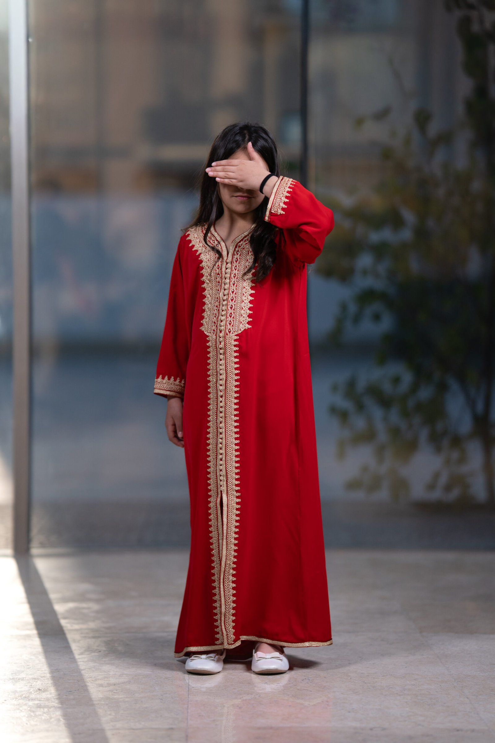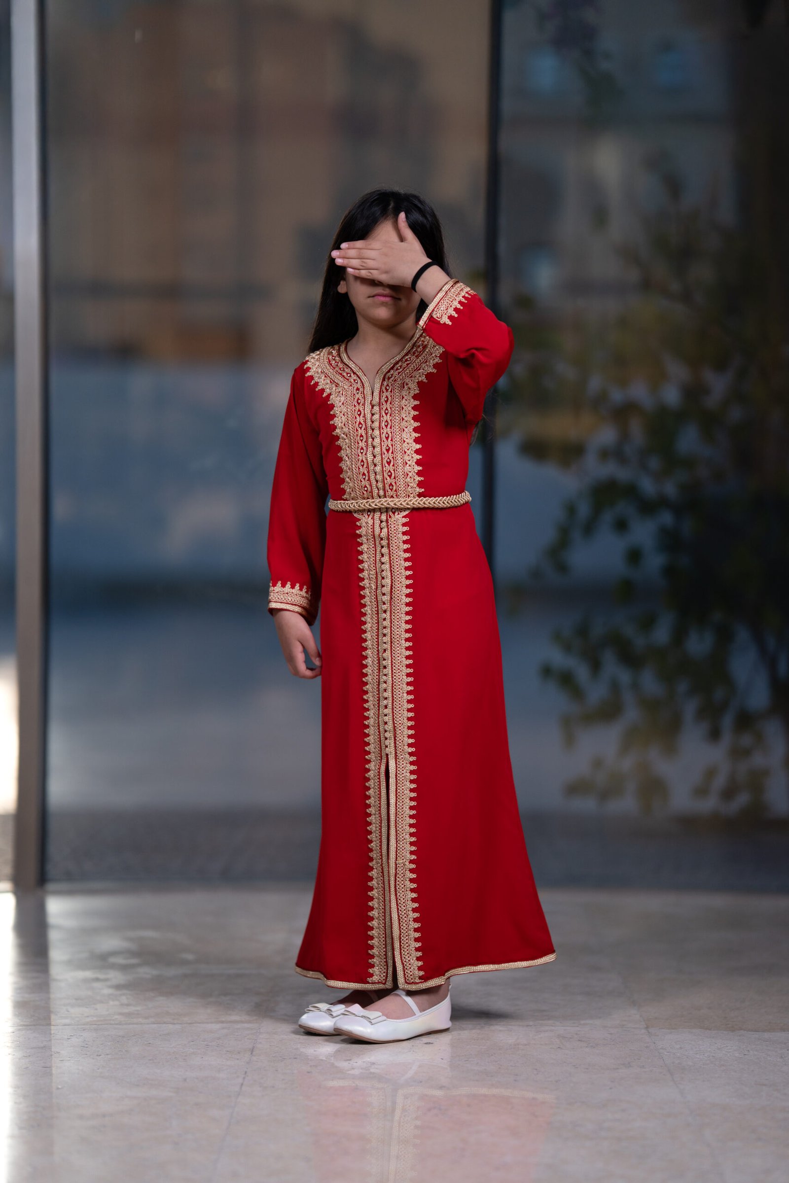 قفطان مغربي بلون أحمر غامج