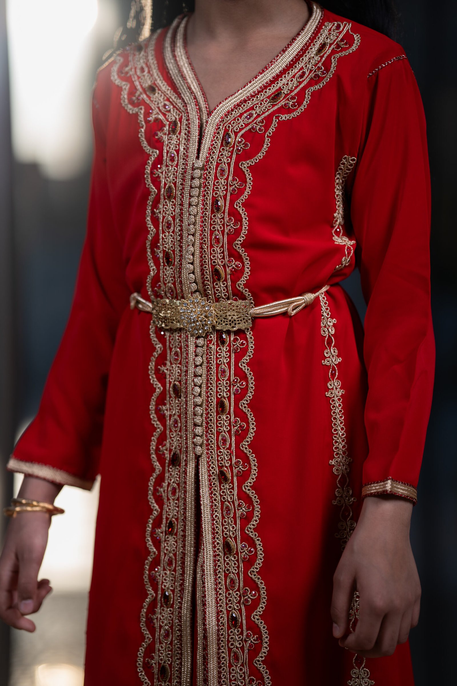لباس مُطرّز يدويًا مكوّن من ثلاثة قطع، ثوبين وحزام